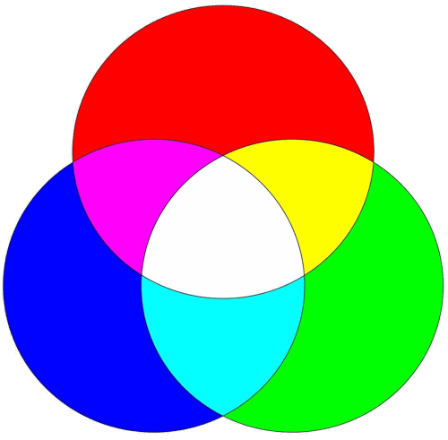 Les couleurs primaires de la lumière sont différentes de celle de nos peintures. Elles sont rouge, bleuet vert. Il s’agit d’un domaine complexe qui nécessite un poste distinct. Je vous tiendrai au courant dès qu’il sera publié.